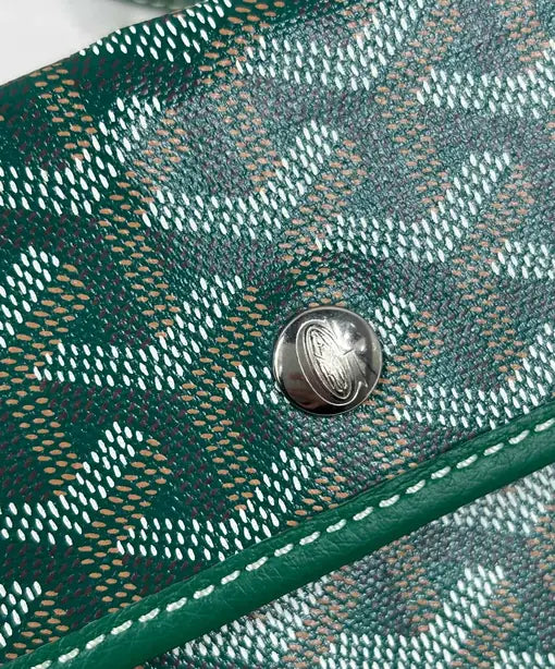 Authentic Goyardine reveals itself immediately through touch and observation. The canvas should feel substantively coated yet supplenever plasticky or stiff with a refined, subtle sheen. The signature chevron pattern provides the most critical authentication marker: hand-painted artisanship. Because artisans paint each chevron individually, genuine bags display microscopic variations in dot placement and textural depth. Run your fingers across the surface authentic chevrons possess dimensional quality, while counterfeits feel uniformly flat and machine-printed.